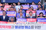 광주시장과 5개구청장 등은 23일 "KTX호남선이 지역 차별의 상징이 되고 있다"며 노선 증편을 요구했다. 강기정 광주시장과 동·서·남·북·광산구청장, 광주시의회·광산구의회 의장은 이날 오전 광주 광산구 광주송정역에서 KTX호남선 증편 결의대회를 열고 이같이 주장했다. 이들은 결의문을 통해 "KTX호남선은 2005년 분기역이 오송역으로 결정된 이후 시간과 요금의 불이익을 감수했으며 경부선에 비해 무려 11년이나 늦은 2015년에 개통되면서 지역차별의 상징이 됐다"고 주장했다. 또 "개통 이후에도 호남선은 주중 대비 주말에 1편 증편한 반면 경부선은 21편을 늘려 20배 차이가 난다"며 "이용객이 가장 많은 시간대(오전 7시~9시·오후 5시~7시)에도 호남선은 주중·주말 상관없이 운행횟수가 13회로 동일하지만 경부선은 27배인 27회 운행되며 주말에는 31회 이다"고 지적했다. 이어 "경부선은 좌석수가 많은 955석 규모의 KTX-1이 80%가 넘는 반면 호남선은 379석 규모의 KTX산천이 절반에 이른다"며 "최신형이 청룡열차는 주중 1대 뿐이다"고 덧붙였다. 그러면서 "주말, 피크시간, 명절에라도 좌석이 많은 KTX를 운행하고 장성~광주송정~목포를 운행하는