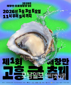고흥군은 내년 1월 3일 오전 11시부터 오후 5시까지 포두면 해창만 오토캠핑장 일대에서 ‘2026 제1회 해창만 고흥 굴 축제’를 처음으로 개최한다고 밝혔다.