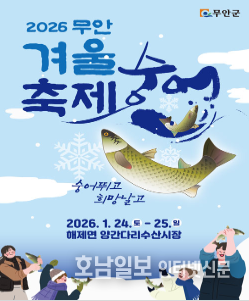 무안군은 겨울철 최고의 별미로 꼽히는 숭어를 소재로 오는 1월 24일부터 25일까지 해제면 주민다목적센터와 양간다리 수산시장에서 ‘2026 무안겨울숭어축제’를 개최한다.