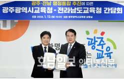 양 시·도 교육감은 이날 오전 시교육청 상황실에서 광주·전남 행정통합 추진에 따른 시·도교육청 간담회를 갖고 행정통합을 위해 공동 노력하기로 합의했다.
