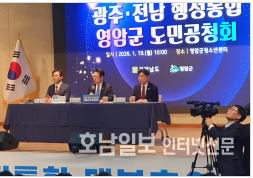 광주시와 전남도의 행정통합에 대한 주민의견 수렴을 위한 전남지역 첫 공청회가 19일 영암군에서 열렸다.