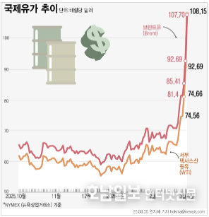 중동 지역에서 생산하는 두바이유는 물론, 미국과 유럽에서 생산하는 WTI와 브랜트유 역시 전쟁 이후 40%가량 상승한 것이다.