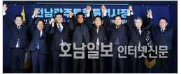 초대 전남광주특별시장 더불어민주당 경선 첫번째 격돌의 장이 된 온라인 합동연설회에서는 각 후보들이 산업·경제 비전과 권역별 발전 구상에 많은 시간을 할애하며 표심을 자극했다.